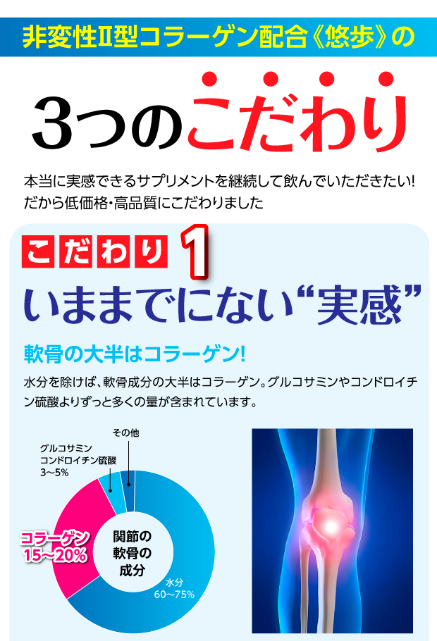 非変性Ⅱ型コラーゲン 悠歩|「新型軟骨成分」非変性2型コラーゲンでスムーズな動き